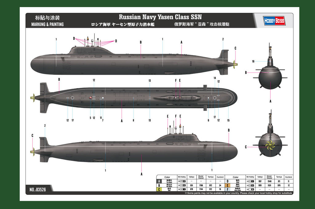 83526 Hobby Boss Подводная лодка Russian Navy Yasen Class SSN.