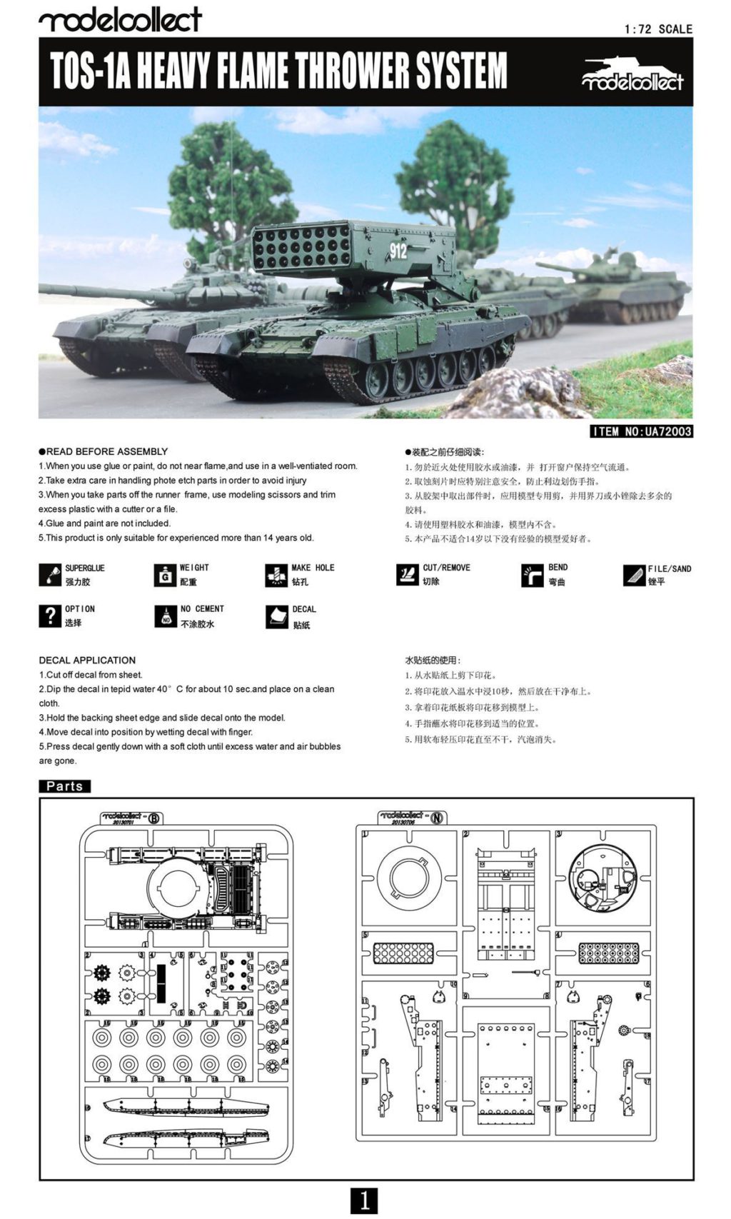 UA72003 Modelcollect Огнеметная система залпового огня ТОС-1А Солнцепёк Масштаб 1:72