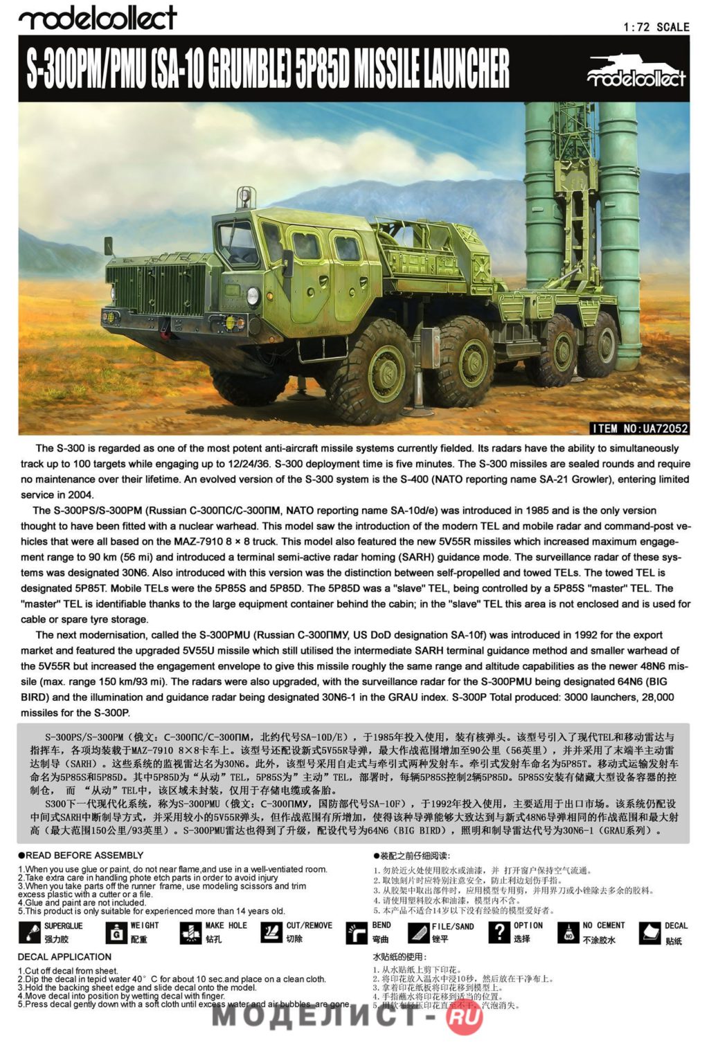 UA72052 Modelcollect Пусковая S-300PM/PMU (SA-10 Grumble) 5P85D Missile launcher